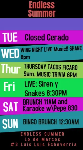 Bebidas, Cocktails, Postres y Pizza para llevar a la playa que esta a 10 pasos y por la avenida principal Luis Echeverria.